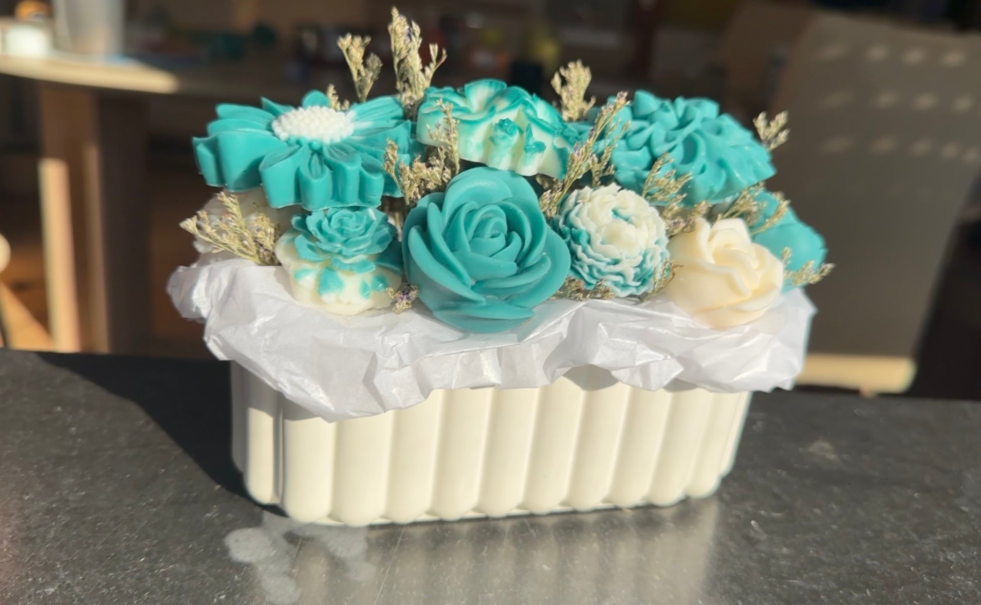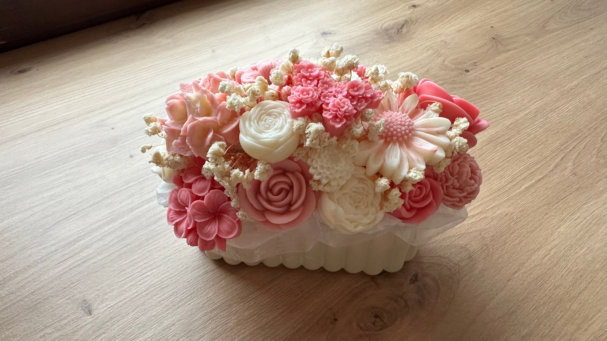 Kerzen gegossen aus Bio Sojawachs. Blumentöpfe sind selbstlosen.